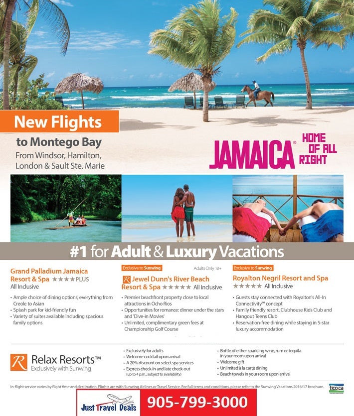 Sunwing has more flights to the south than any other leisure carrier with convenient direct service Jamaica was named the top three island in the world by TripAdvisor® in 2016. Montego Bay, Miami, Toronto and London. Representative offices are located in Berlin, Barcelona, Rome ... Get Document